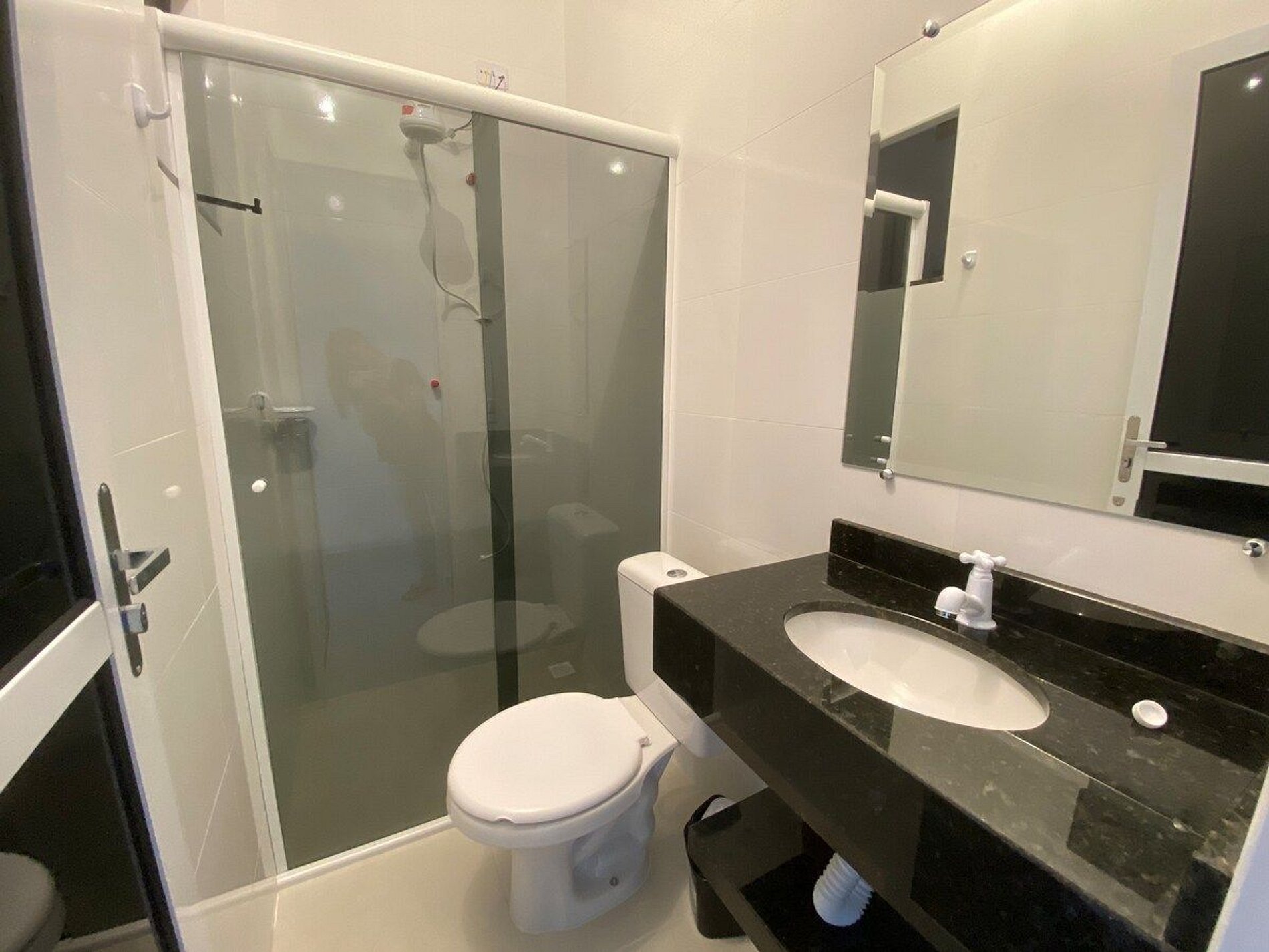 Acesso individual ao apartamento, portão com chave, estacionamento descoberto em frente à porta de acesso, com separação em barra de alumínio para as demais unidades, acesso liberado com a tag na lateral do prédio (portão branco).