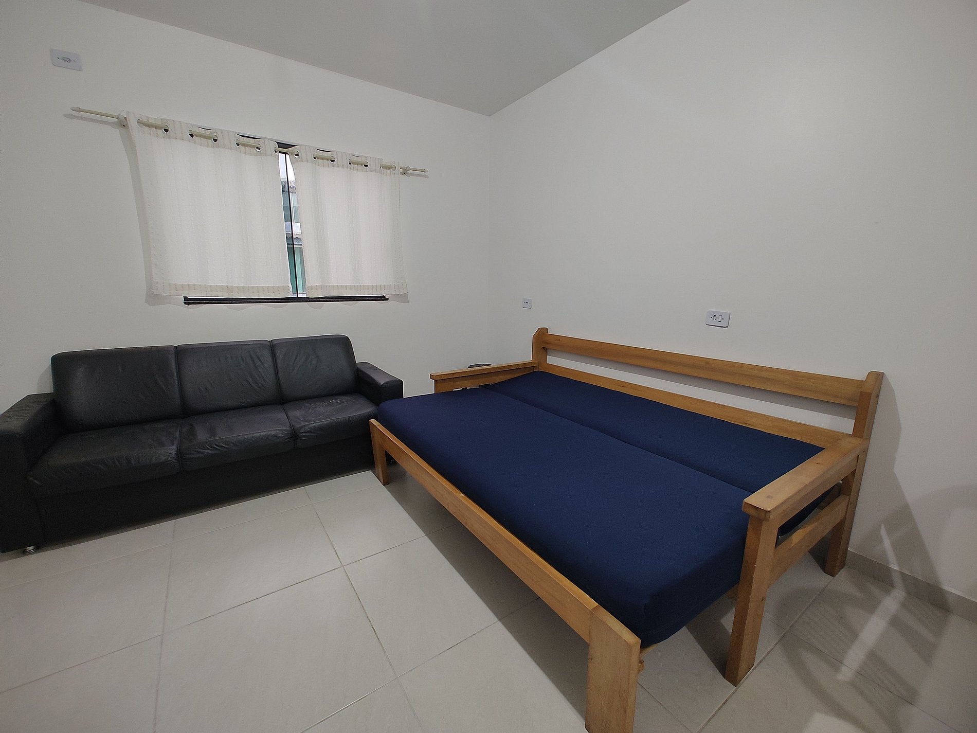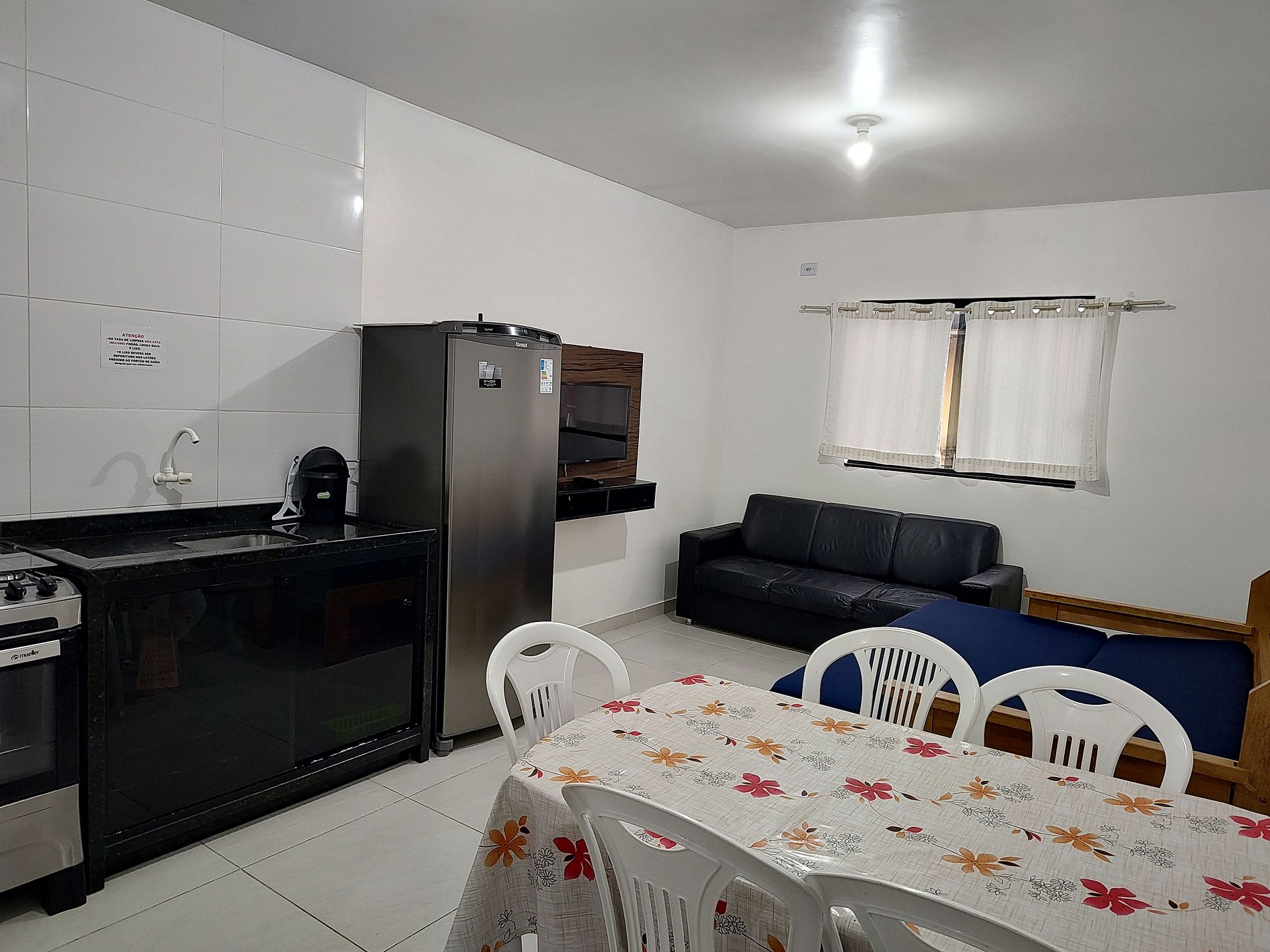 Kitinete beira mar, 1º andar, contendo 1 dormitório sendo c/sacada frente mar, bwc social c/ blindex, granito, copa/cozinha, área de serviço. Dormitório c/ 1 cama de casal, 1 cama de solteiro e 1 sofá cama na sala. Ar condicionado no quarto. Ventilador portátil, microondas, Tv 32". Ducha fria coletiva. Acomodação máxima para 5,0 (cinco) pessoas, sendo 03 adultos + 2 crianças até 12,0 anos. Estacionamento para 01 carro pequeno. Aluga somente para família.