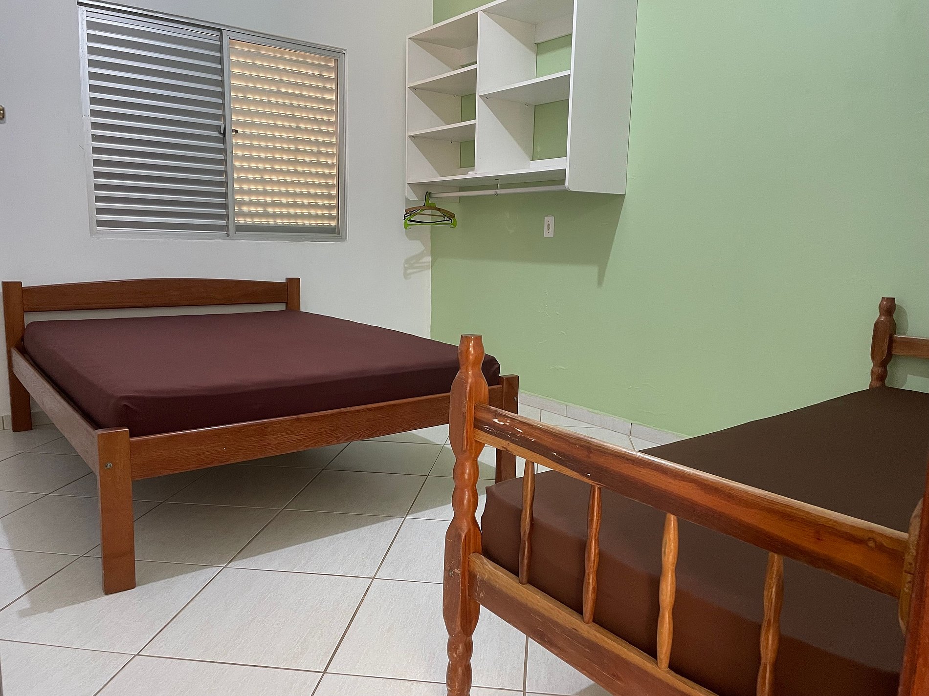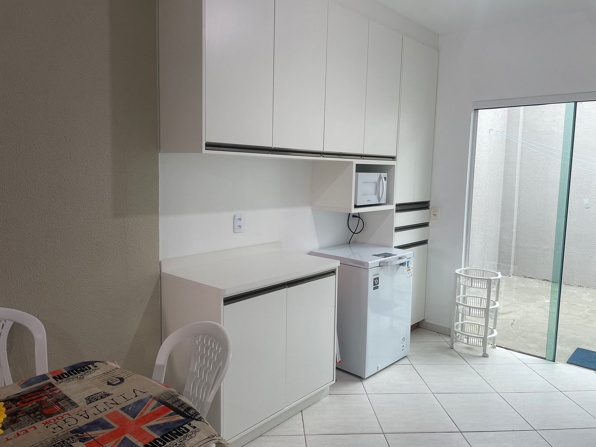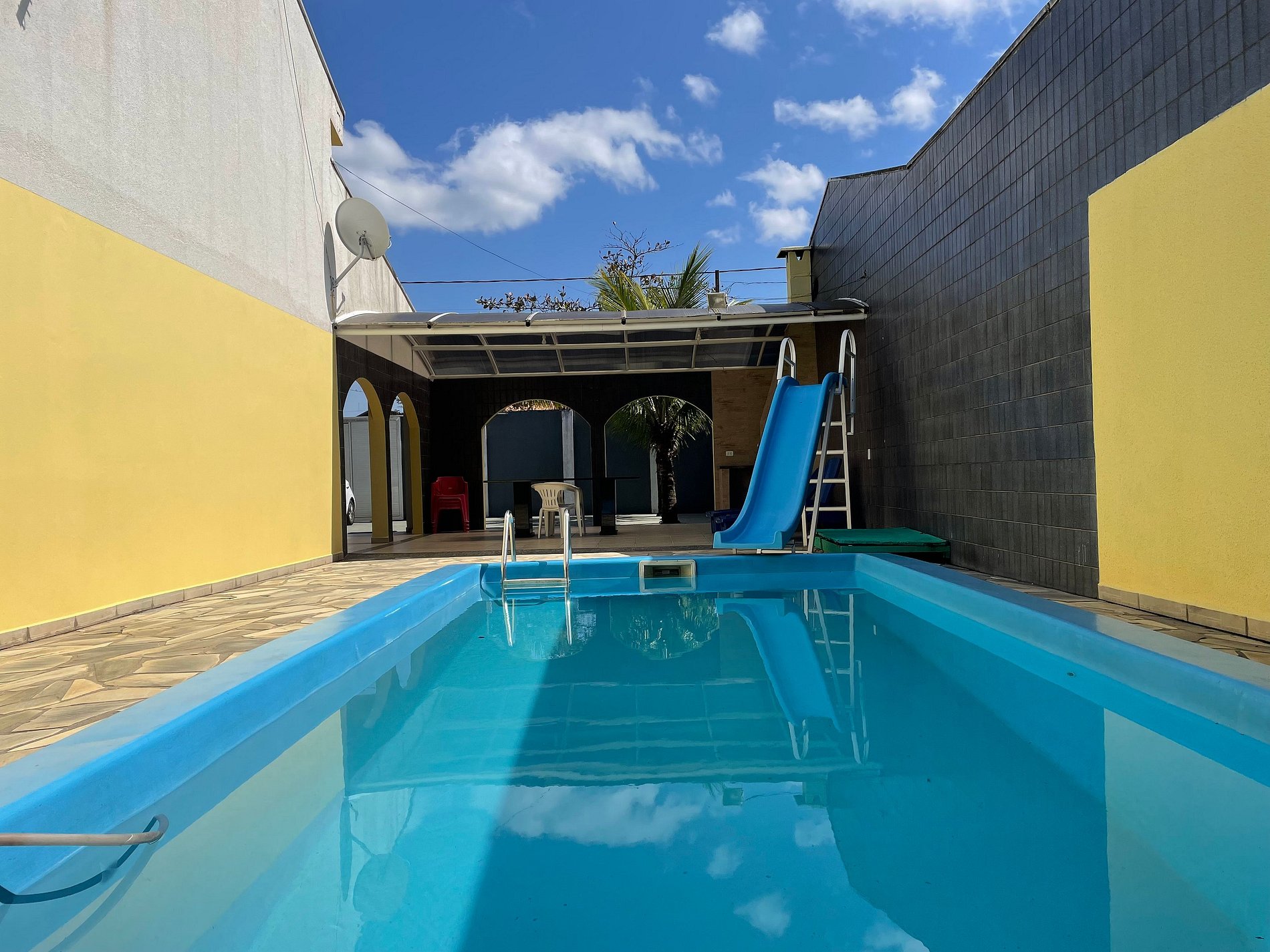 Ar condicionado nos quartos, Wi-fi, Tv 32" na sala, microondas, freezer, piscina com escorregador, área da churrasqueira com mesa de granito, alarme monitorado, estacionamento interno com muro alto, WIFI.