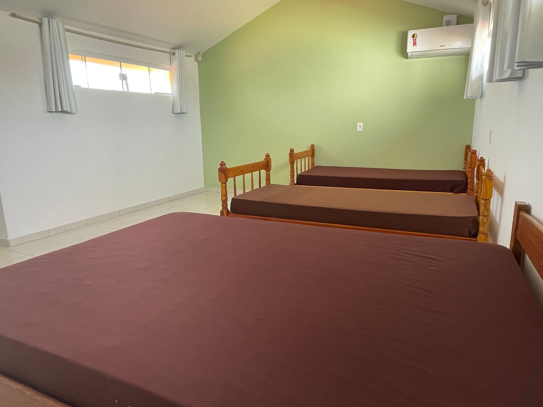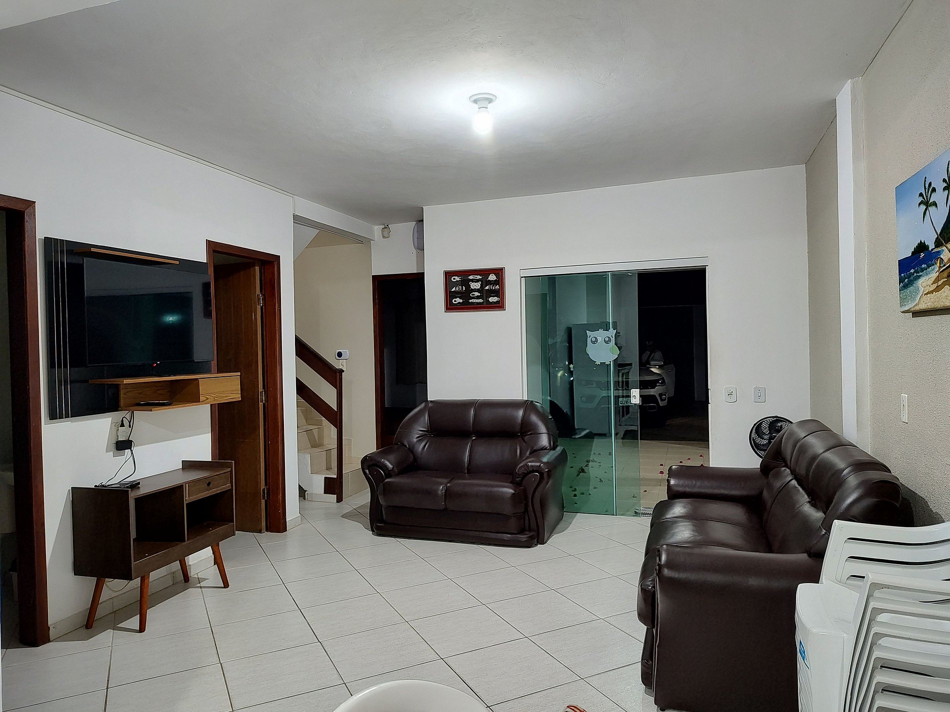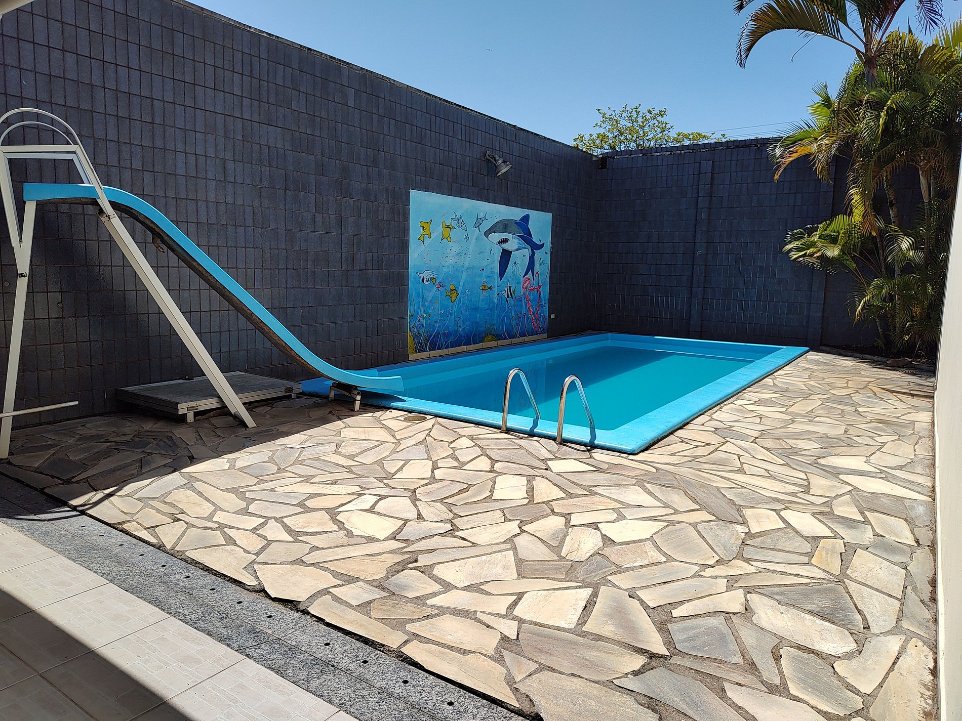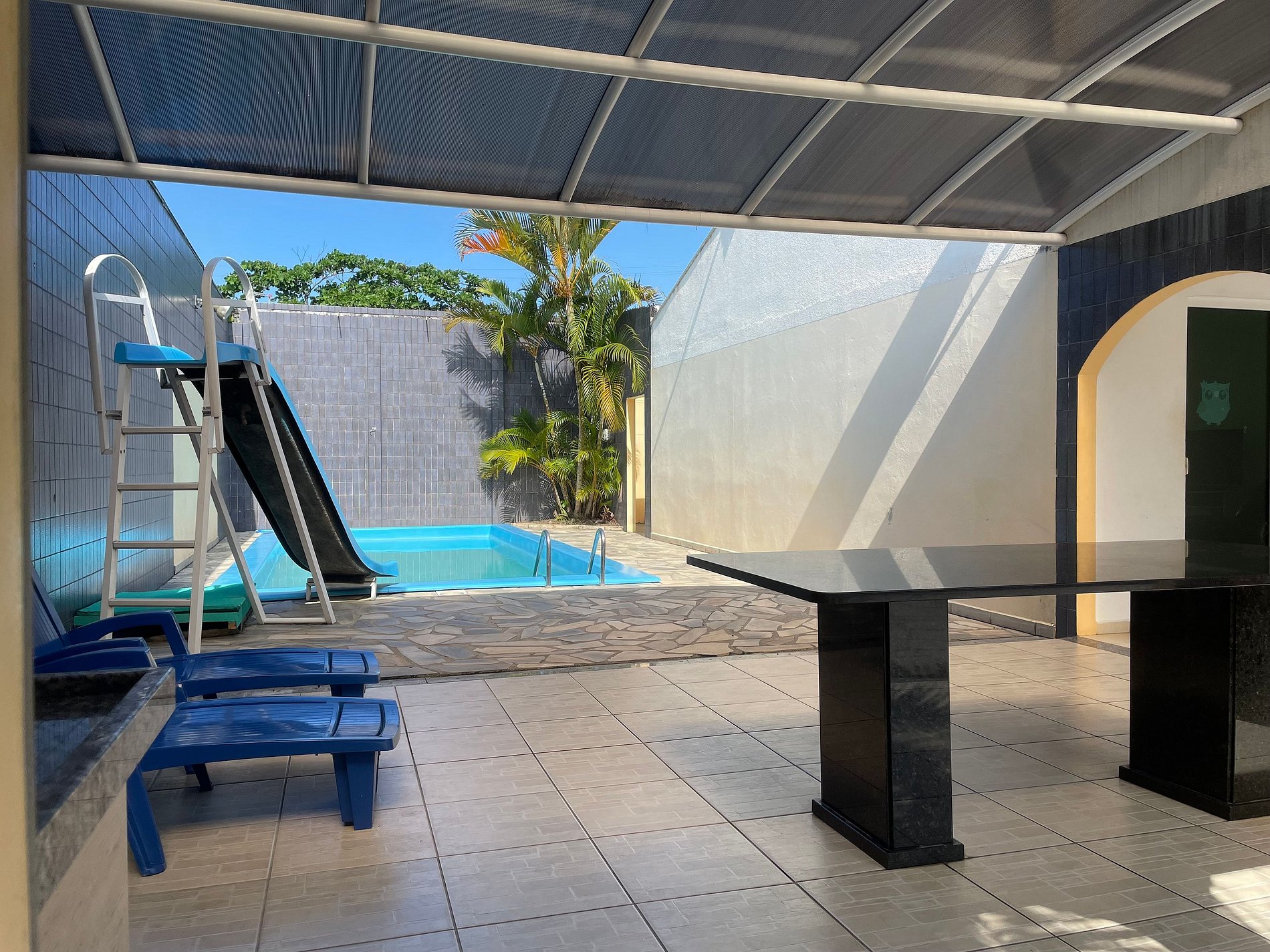 Casa c/ Piscina: 8,0 x 4,0m, 1,10m de profundidade, contendo na parte térrea dois dormitórios c/ar condicionado, contendo 01 cama de casal e 01 cama de solteiro em cada quarto, dois banheiros sociais c/box, sala/copa/cozinha, churrasqueira coberta, varanda, estacionamento p/03 carros. Na parte superior um dormitório com 01 cama de casal e 02 camas de solteiro, Ar condicionado em todos os quartos. Distância do mar 120,0 metros aproximadamente.