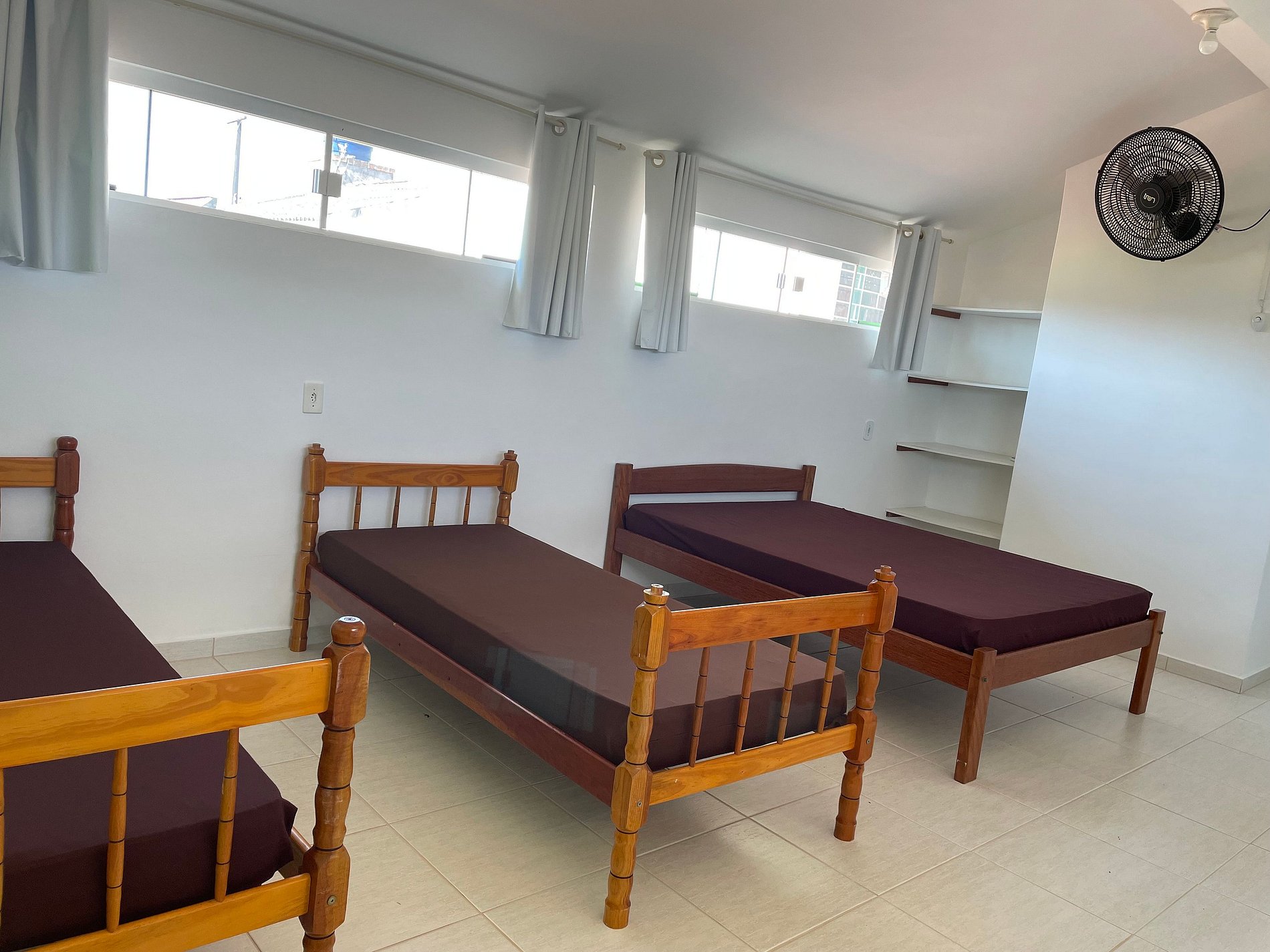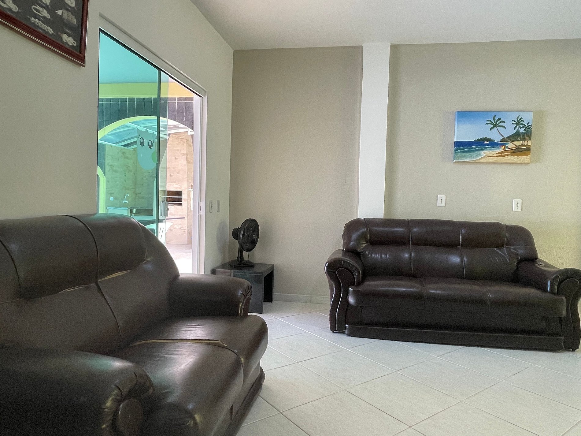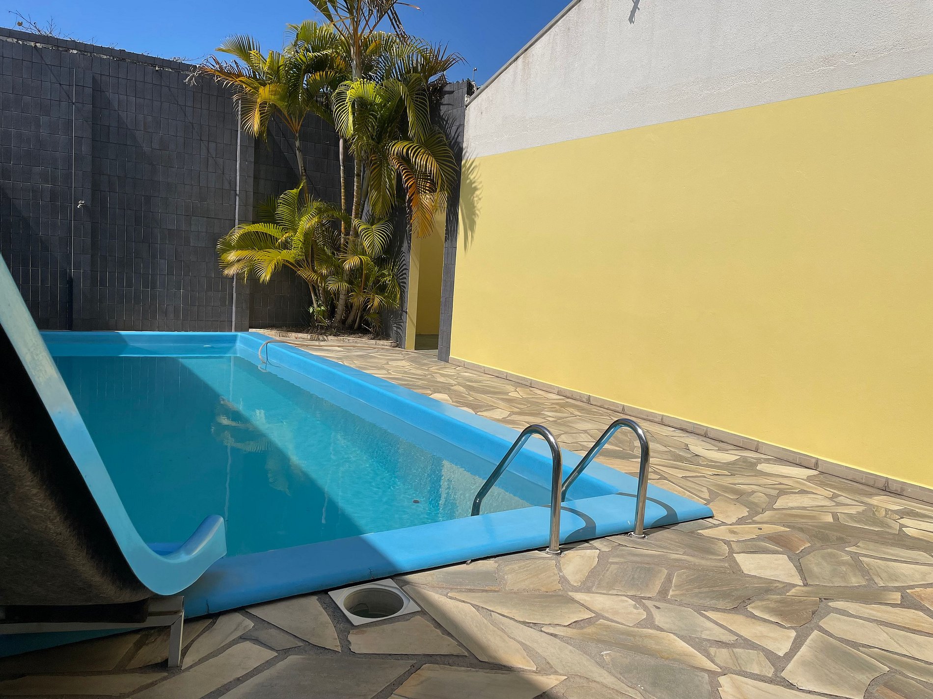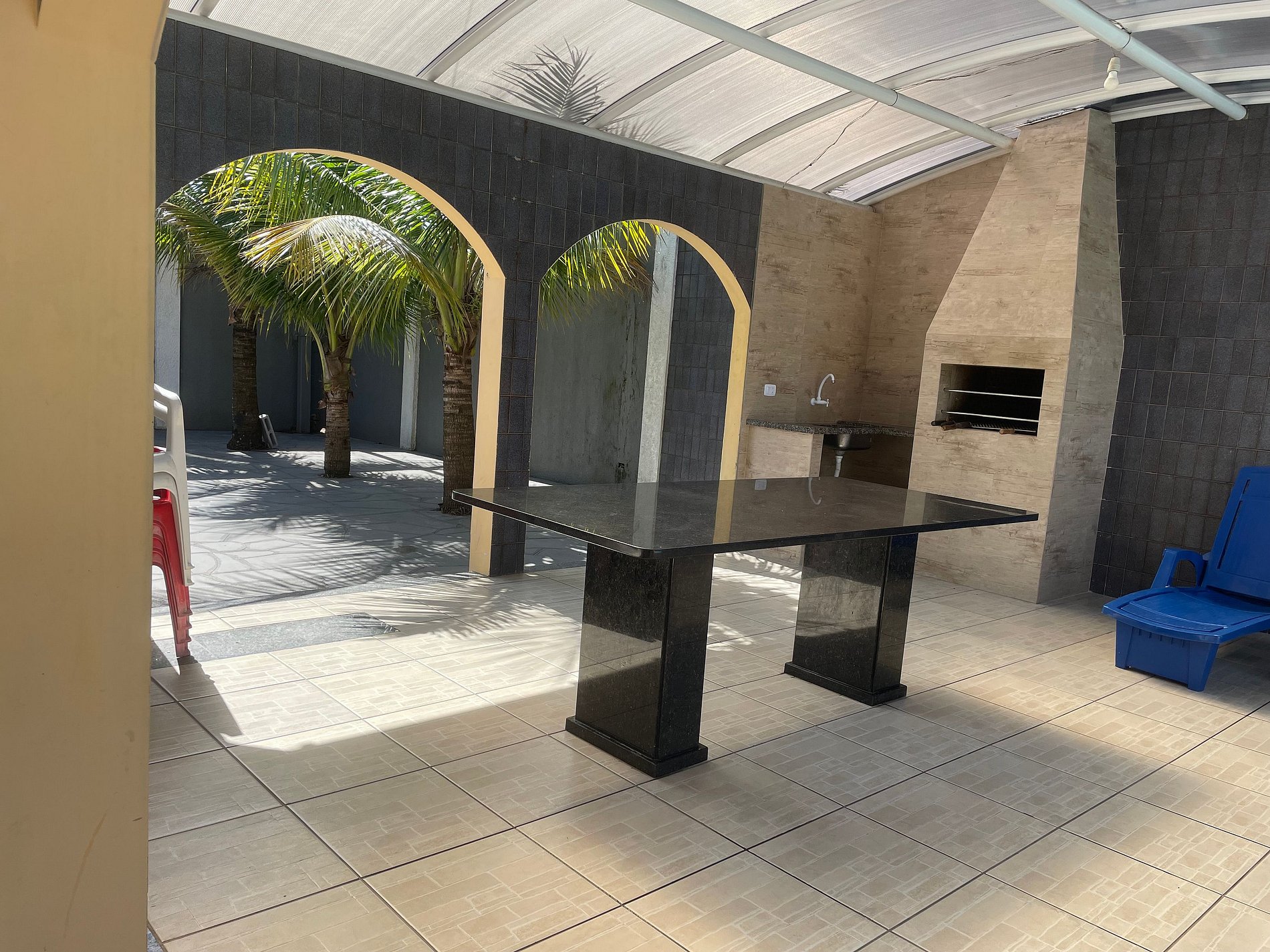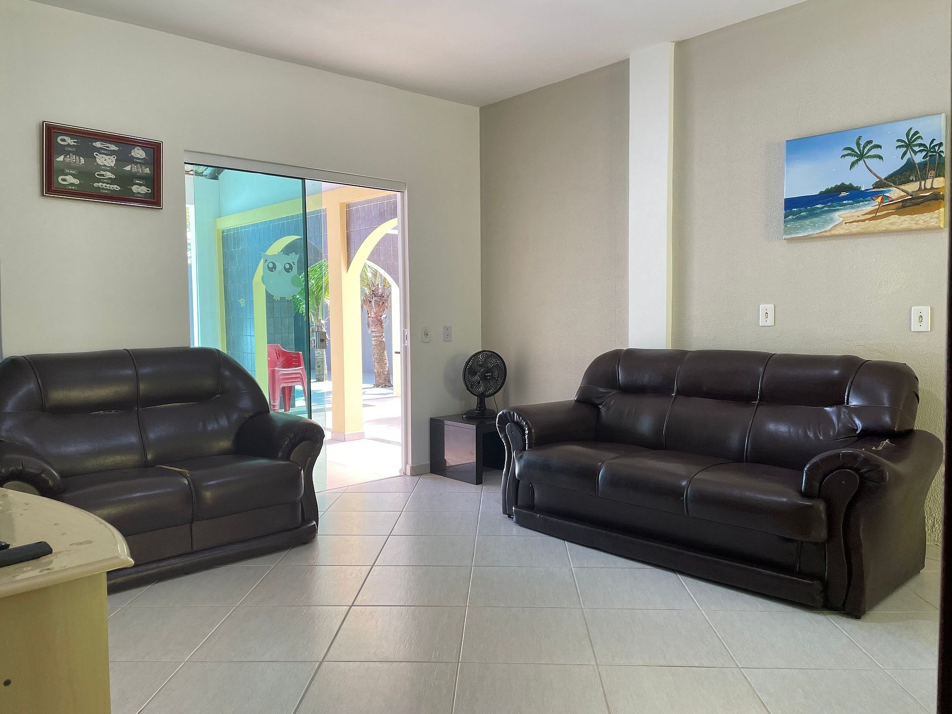 Casa c/ Piscina: 8,0 x 4,0m, 1,10m de profundidade, contendo na parte térrea dois dormitórios c/ar condicionado, contendo 01 cama de casal e 01 cama de solteiro em cada quarto, dois banheiros sociais c/box, sala/copa/cozinha, churrasqueira coberta, varanda, estacionamento p/03 carros. Na parte superior um dormitório com 01 cama de casal e 02 camas de solteiro, Ar condicionado em todos os quartos. Distância do mar 120,0 metros aproximadamente.