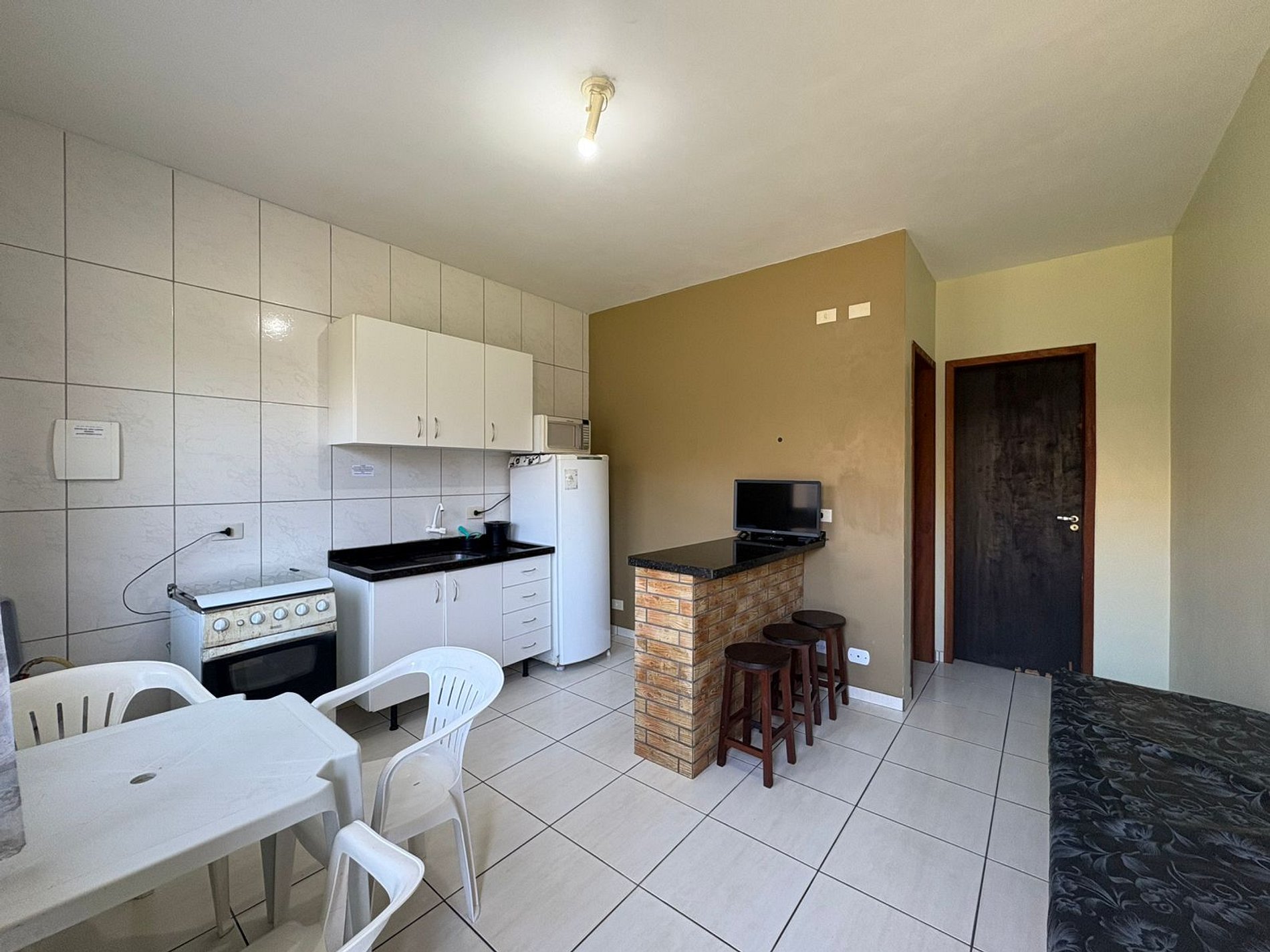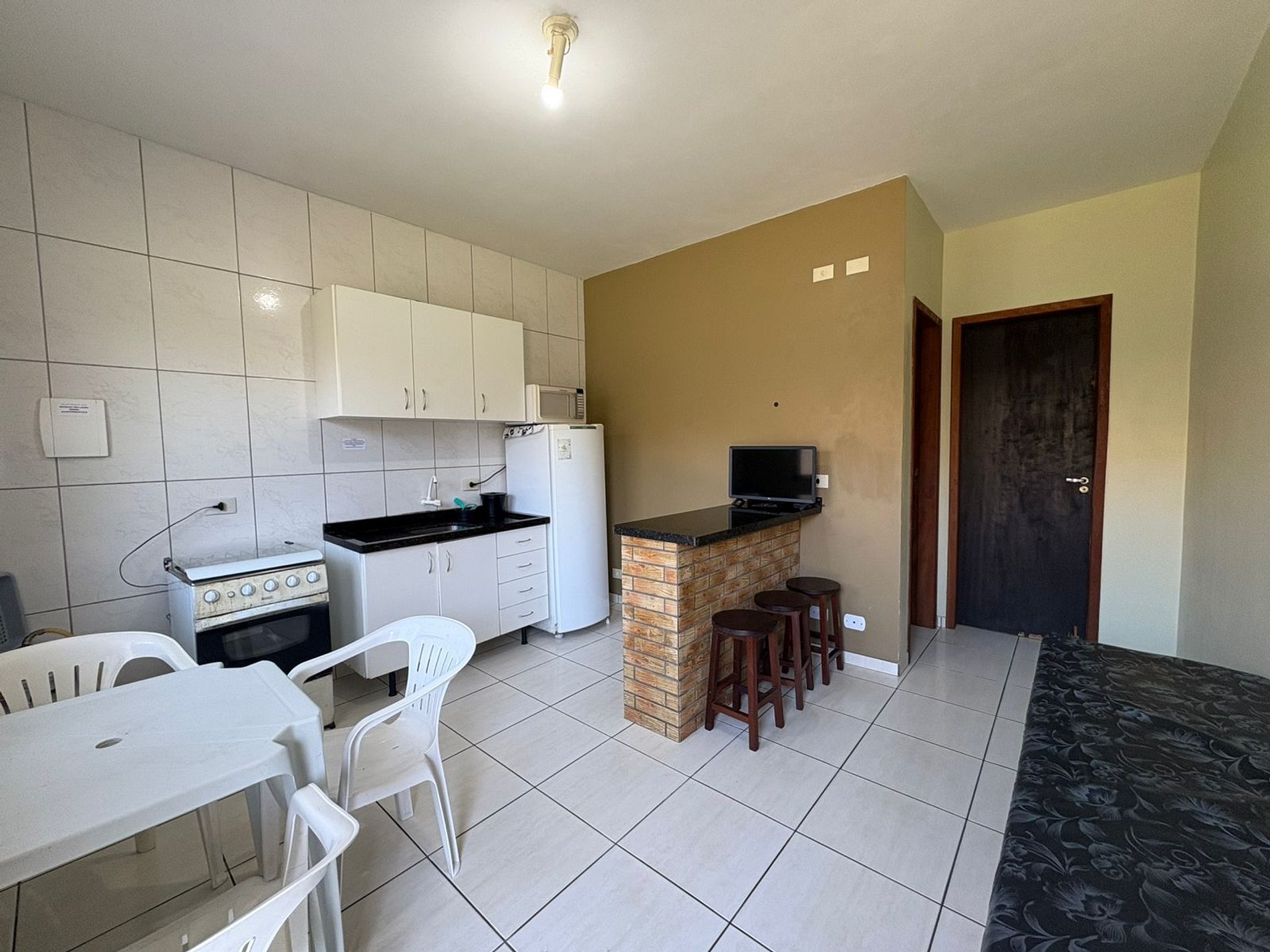 Apartamento, conta com utensílios de cozinha, geladeira, internet wi-fi. Estacionamento EXTERNO para 01 carro de passeio.