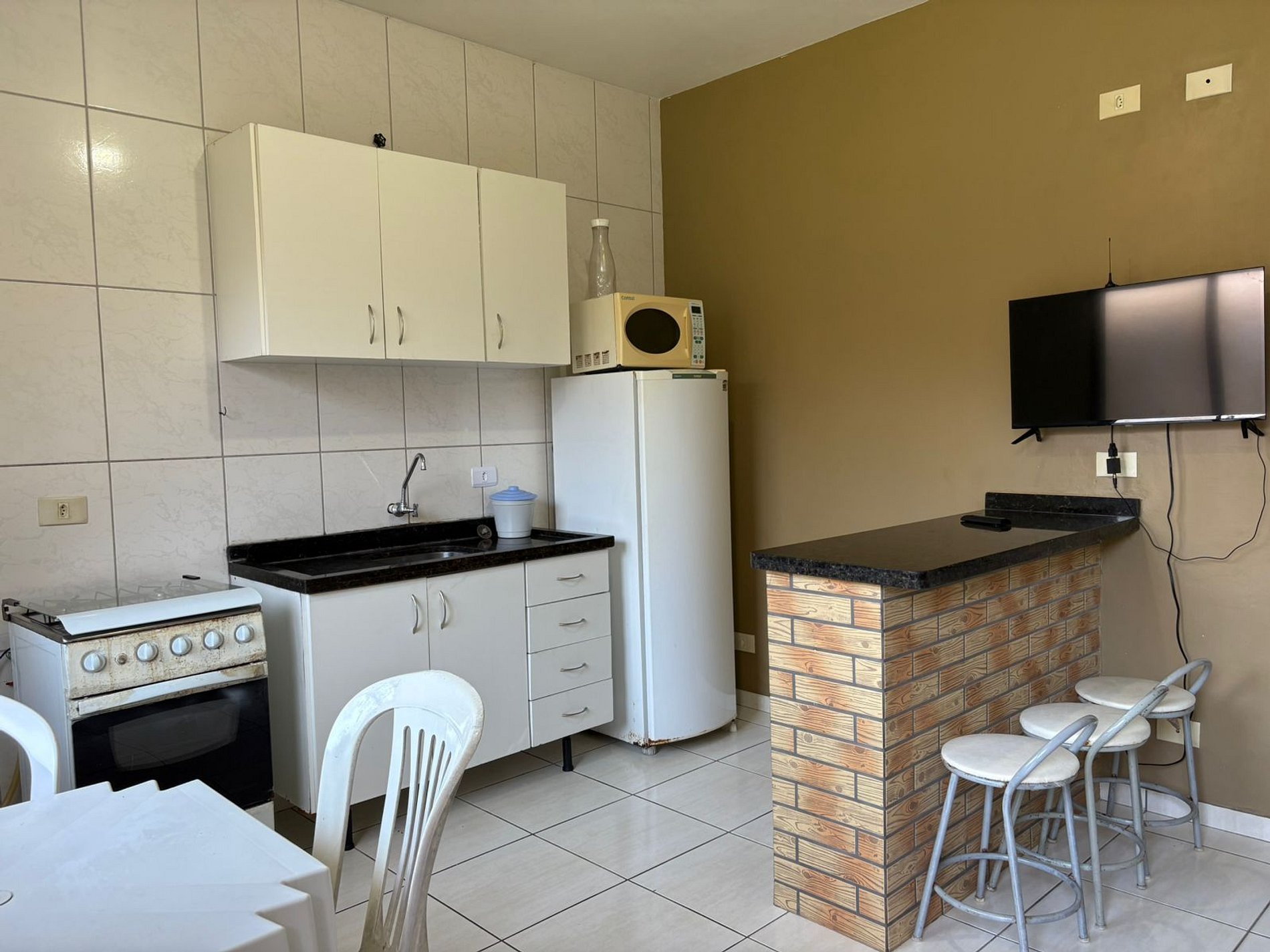 Apartamento, conta com utensílios de cozinha, geladeira, internet wi-fi. Estacionamento EXTERNO para 01 carro de passeio.