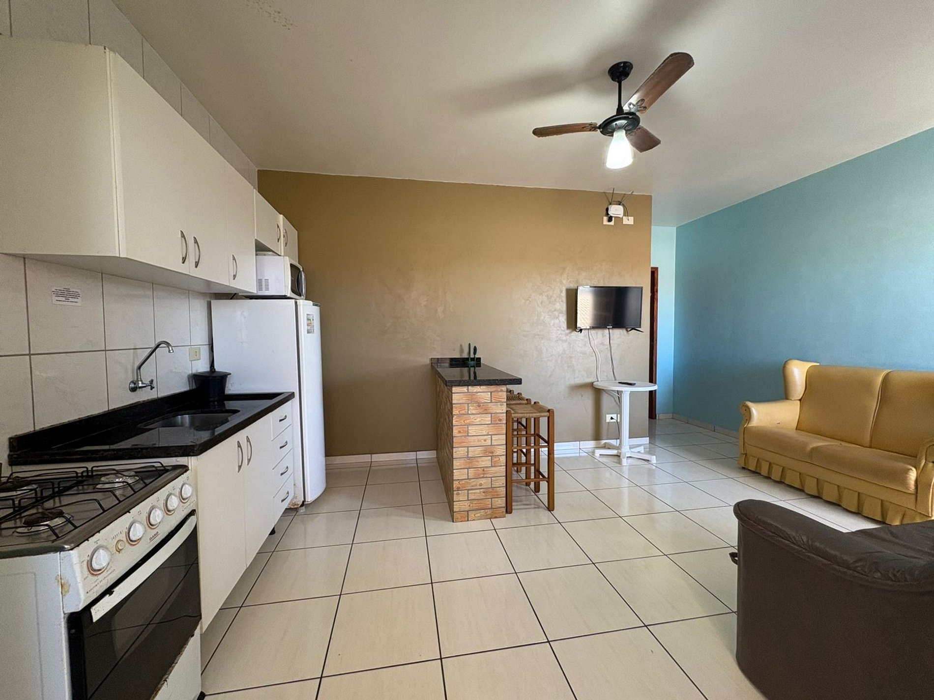 Apto superior de nº 06, contendo 01 dormitório C/ AR CONDICIONADO c/cama casal + 1 bicama solteiro, sala/cozinha, banheiro social c/box, vaga p/ 01 carro, TV, WiFi. Acomodação máxima p/ 05 pessoas.