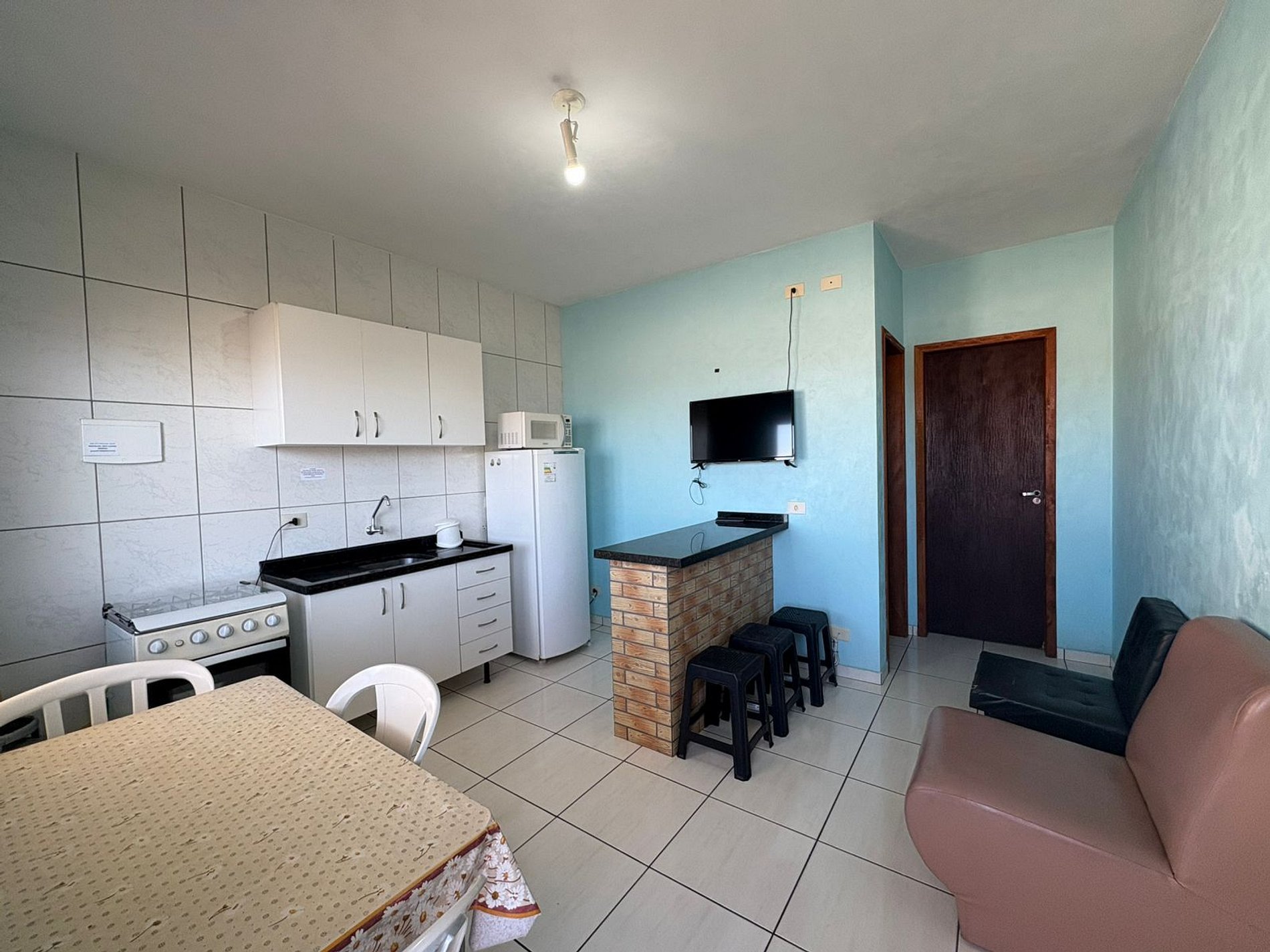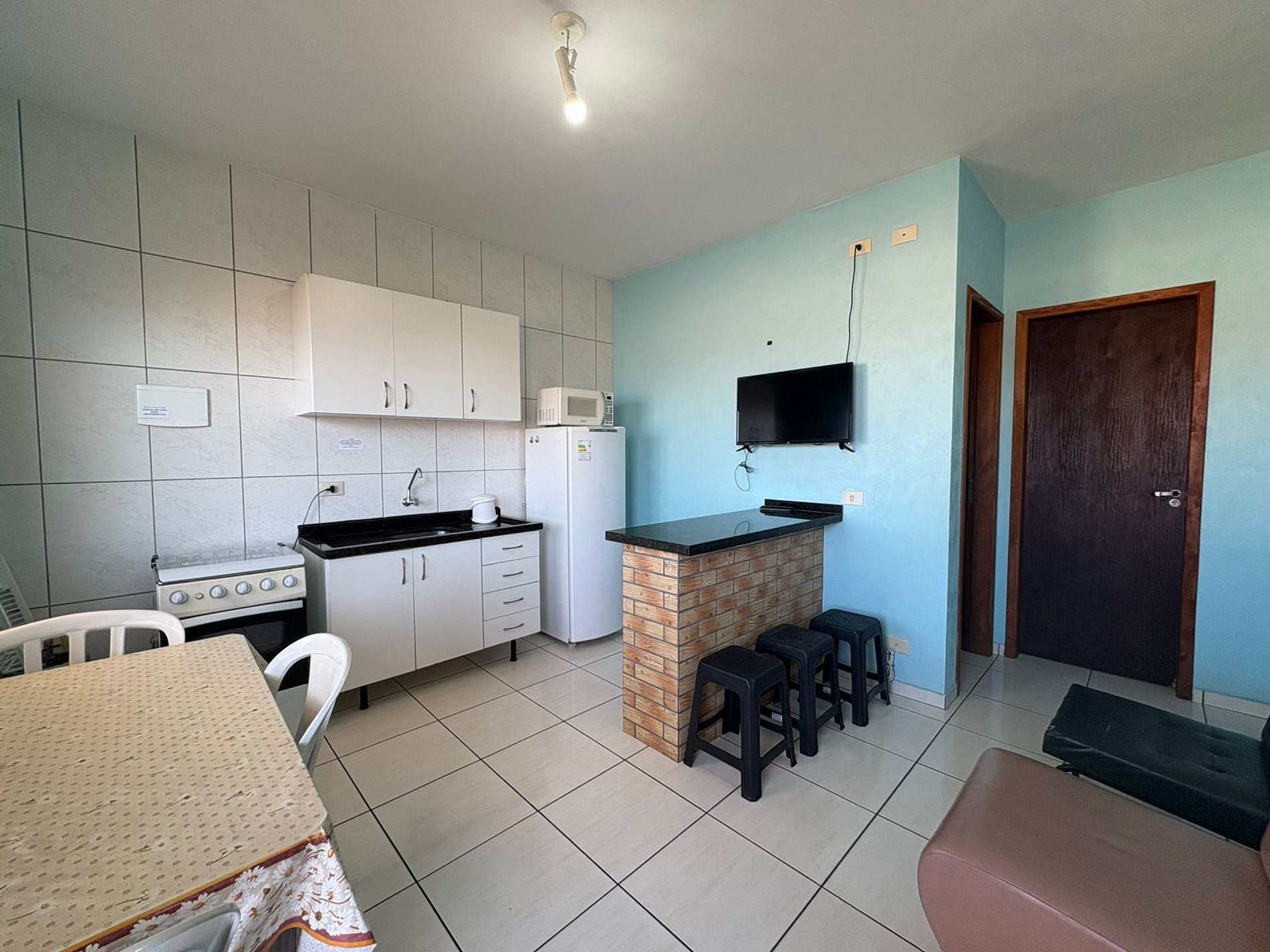 Apartamento, conta com utensílios de cozinha, Tv, geladeira, microondas, internet wi-fi. Estacionamento interno para 01 carro de passeio.