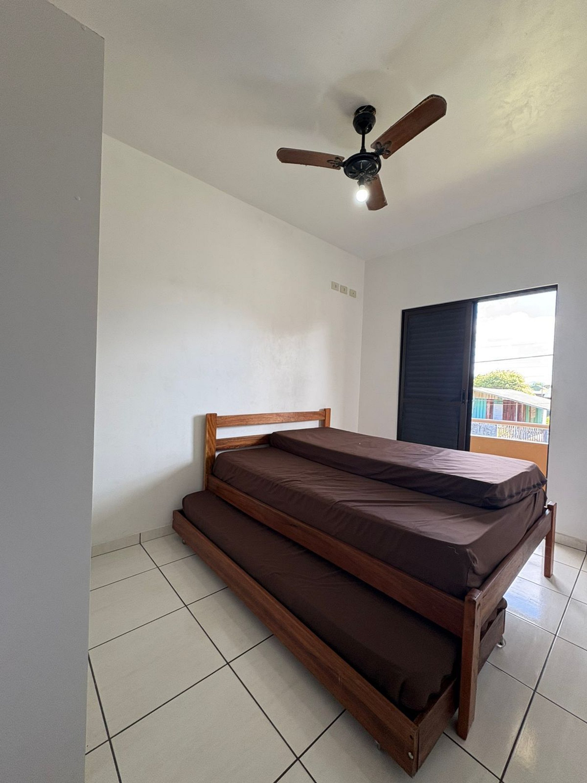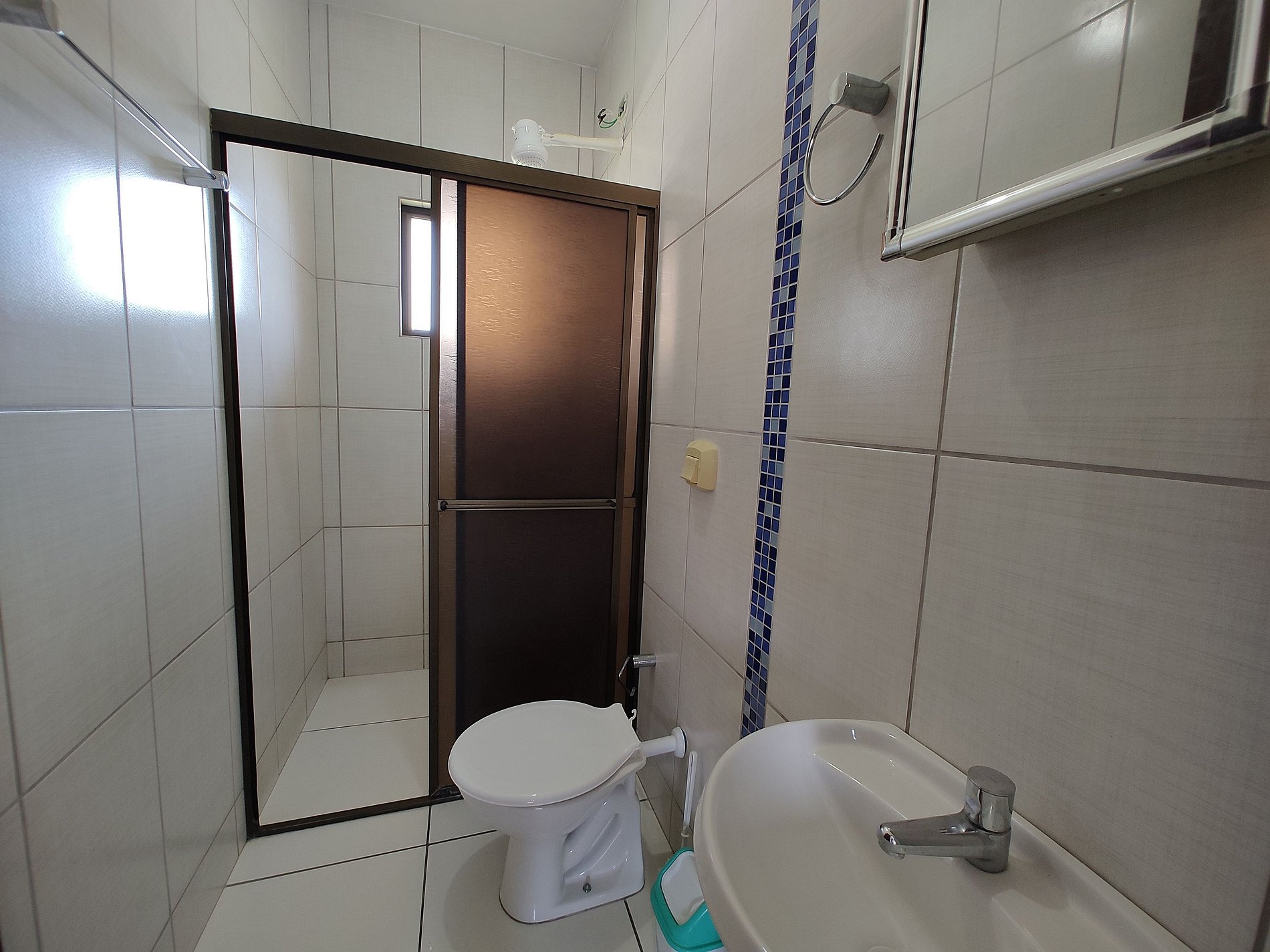 Apto superior de nº 09, contendo 01 dormitório c/ ventilador de teto, c/ 1 cama casal + 1 cama solteiro + 01 colchão de solteiro, sala/cozinha, banheiro social c/box, vaga p/ 01 carro, tela mosquito, TV, WiFi. Acomodação p/ 04 pessoas no máximo.