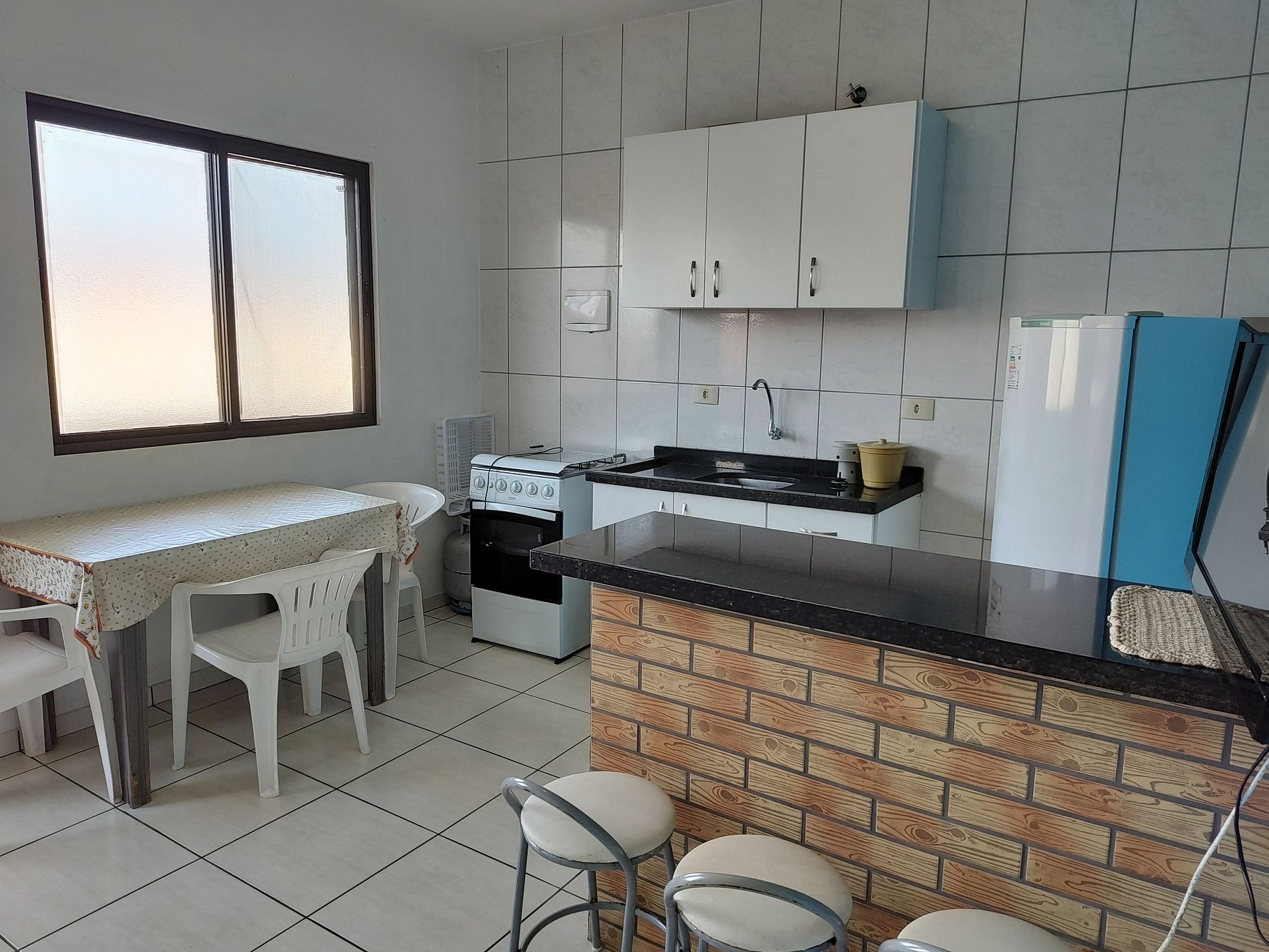 O conjunto residencial Praia Sul Ipanema possui 11 unidades, sendo 5 terreas e 6 unidades superiores de 1 dormitório, todas com cozinha completa, tendo geladeira, fogão 4 bocas, pia de cozinha e armários com louças essenciais, na área de uso comum ha uma churrasqueira, algumas unidades com ar condicionado.
