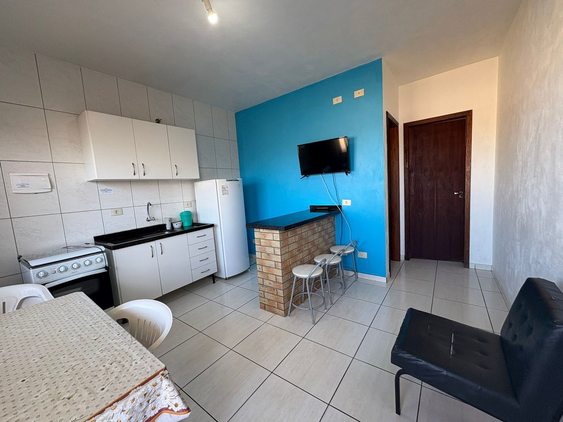 Apartamento, conta com utensílios de cozinha, geladeira, internet wi-fi. Estacionamento interno para 01 carro de passeio.