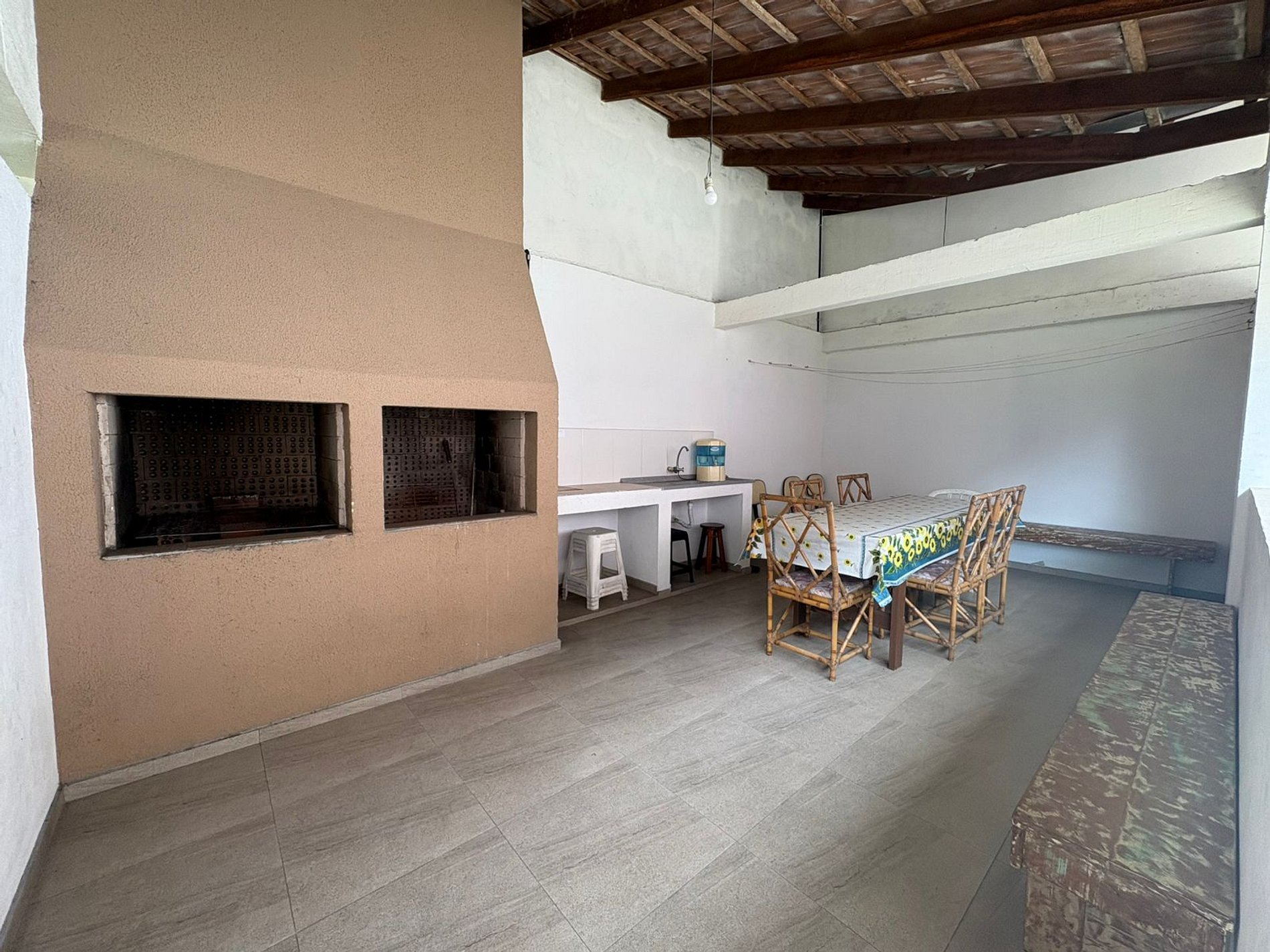 Apto superior de nº 10, contendo 01 dormitório c/ ventilador de teto, c/ 1 cama casal + 1 cama solteiro + 01 colchão de solteiro, sala/cozinha, banheiro social c/box, vaga p/ 01 carro, tela mosquito, TV, WiFi. Acomodação máxima p/ 04 pessoas.