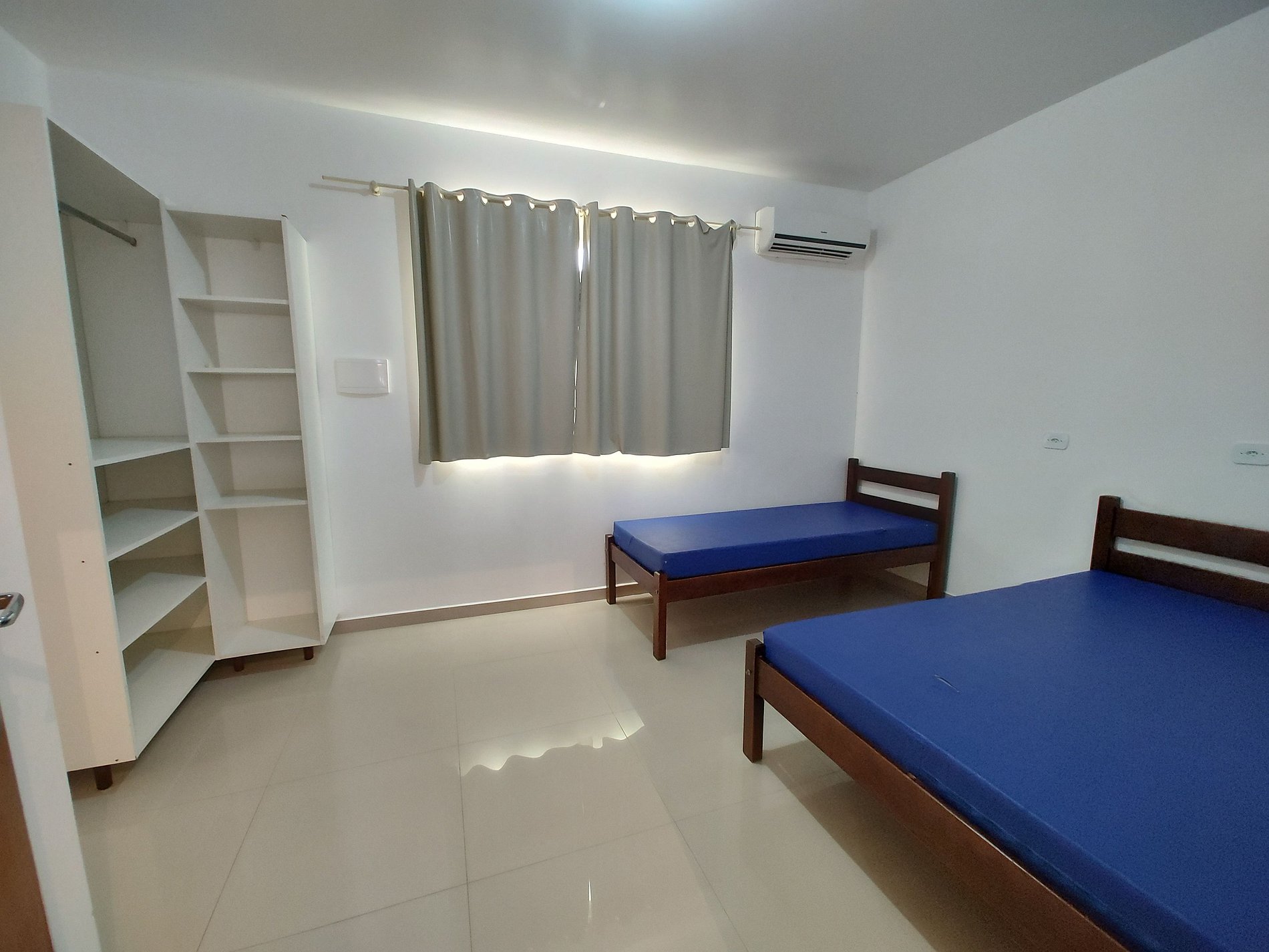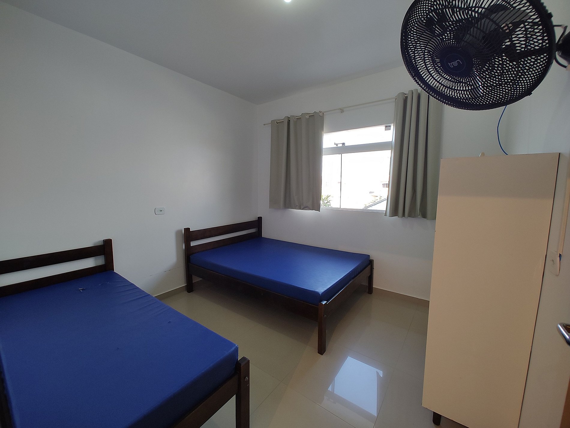 Ótimo sobrado geminado, contendo 4 dormitórios, sendo 03 dormitórios na parte superior (01 suíte + 01 bwc social C/ AR CONDICIONADO) e 1 dormitório na parte térrea. Ainda no térreo sala, copa, cozinha, bwc social completo, varanda c/ churrasqueira e lavanderia nos fundos. Tv, ventiladores, Suíte: 01 cama de casal + 01 cama de solteiro; Dois quartos cada um com 01 cama de casal + 01 de solteiro; quarto térreo 01 cama de casal. Distância da praia 120,0 m. Acomodação máxima para 11,0 (onze) pessoas