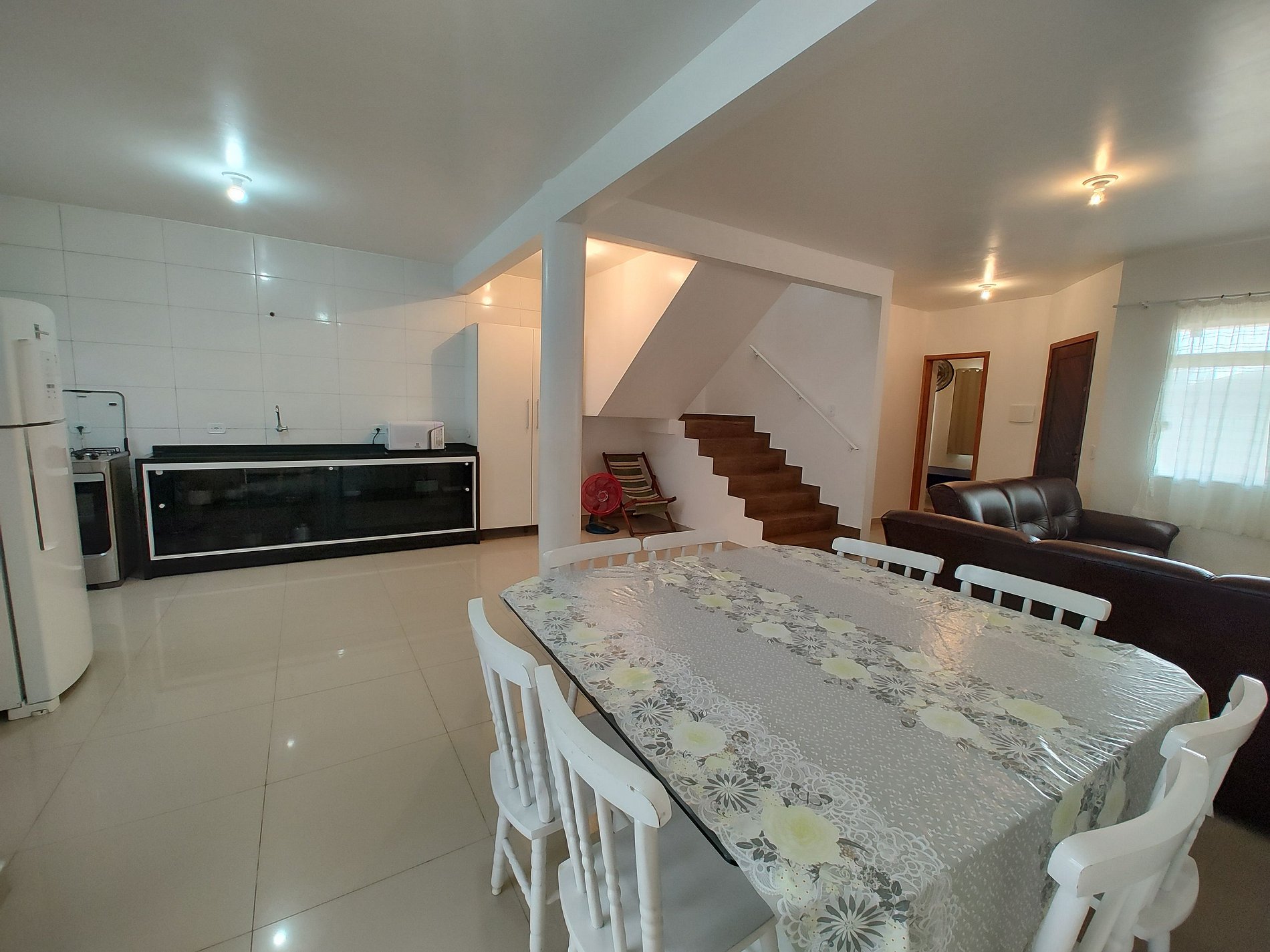 Ótimo sobrado geminado, contendo 4 dormitórios, sendo 03 dormitórios na parte superior (01 suíte + 01 bwc social C/ AR CONDICIONADO) e 1 dormitório na parte térrea. Ainda no térreo sala, copa, cozinha, bwc social completo, varanda c/ churrasqueira e lavanderia nos fundos. Tv, ventiladores, Suíte: 01 cama de casal + 01 cama de solteiro; Dois quartos cada um com 01 cama de casal + 01 de solteiro; quarto térreo 01 cama de casal. Distância da praia 120,0 m. Acomodação máxima para 11,0 (onze) pessoas